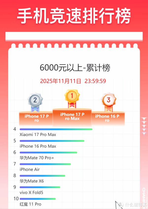 领先来看全价位名次榜,本年双十一从10月9日到11月11日握续一个多月时刻,成为有史以来最长双十一活动。苹果依旧是行业翘楚,销量前十名中独占半壁山河,iPhone17系列全员霸榜前三名,上一代iPhone16 Pro和上上代iPhone15分列第七名和第八名。在手机行业,苹果是无可争议的销量霸主,不需要加任何定语前缀,哪怕所有这个词国居品牌加起来也不及以与之抗衡。