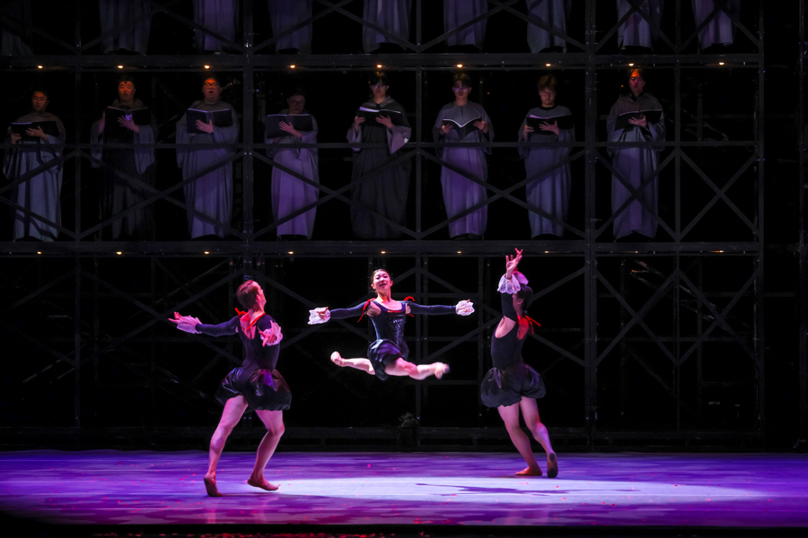 下半场《临了的歌》灵感来自王尔德1888年的短篇演义《夜莺与玫瑰》,编舞胡颂威觉得,“其中的两个东谈主物——王尔德和他的缪斯夜莺,彼此启发,在巴赫不法例的旋律中,舞出形态的高下篡改。”《临了的歌》主要由巴赫一首经文歌和四首器乐作品的改编交汇而成,小提琴和古键琴的鲜明忧郁与上半场《布兰诗歌》的肥大相对照,“《布兰诗歌》与《临了的歌》双剧并呈,不雅众将阅历一场至极无边的心扉旅程。”卫承天说。