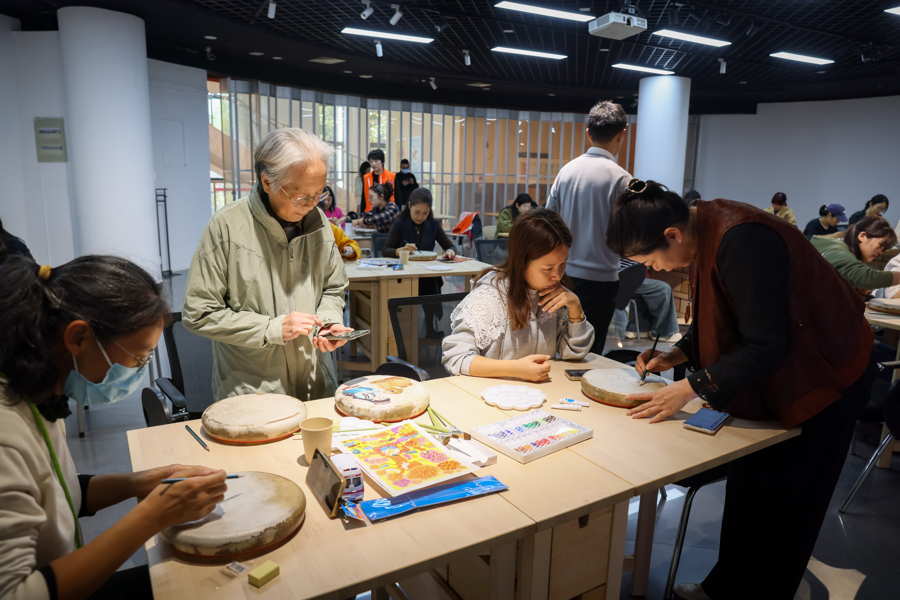 “打起手饱读唱起歌”,手饱读不仅是新疆歌舞的“活标记”,更成为这次文化交流的“移动画布”。行径现场,参与者在手饱读上绘画农民画,将质朴的民间笔触与独到的民族乐器集中首,既展现新疆艺术的灵动怒韵,也传递出各族大众对生存的诚笃疼爱。